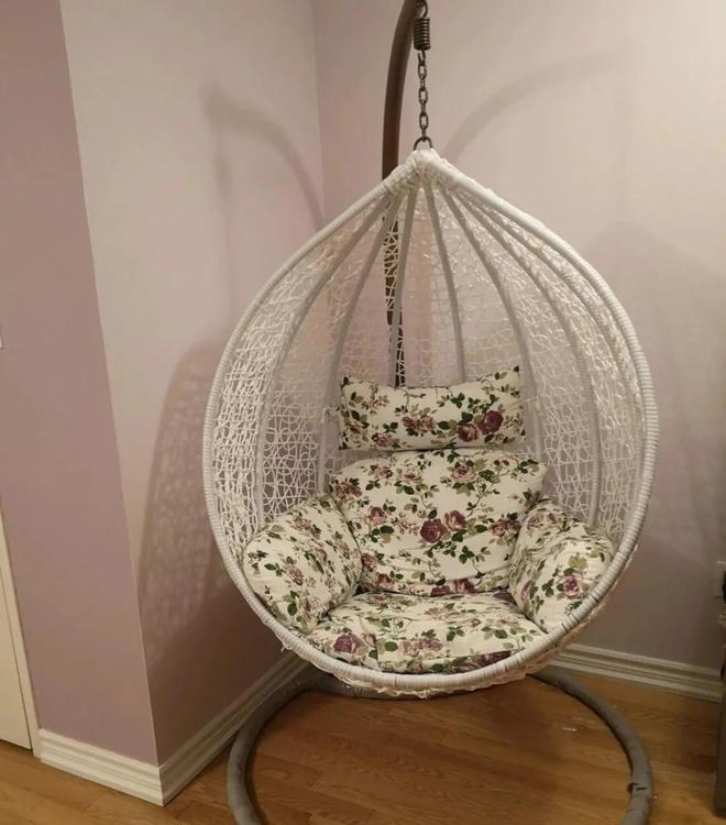 随着时间的推移就会发现,一年也不会坐在吊篮上面一次,但会随手将衣服或者是其他的杂物放在上面,变成了一个杂物收纳篮。