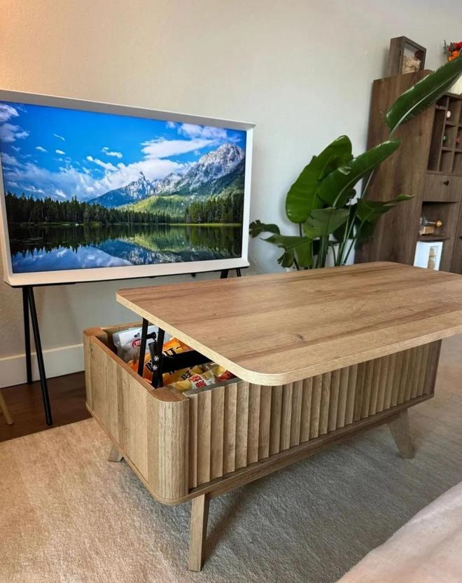 等到使用时,才知道想变形,得先把茶几上的物品先挪开才行。