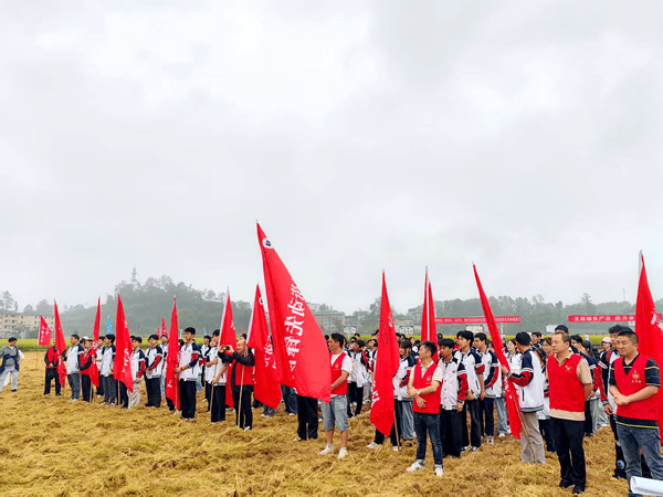 9月24日,金秋稻浪翻滚间,重庆市涪陵第十七中学校联合渝妹儿米业(重庆)集团有限公司,组织160余名党员教师、共青团员及