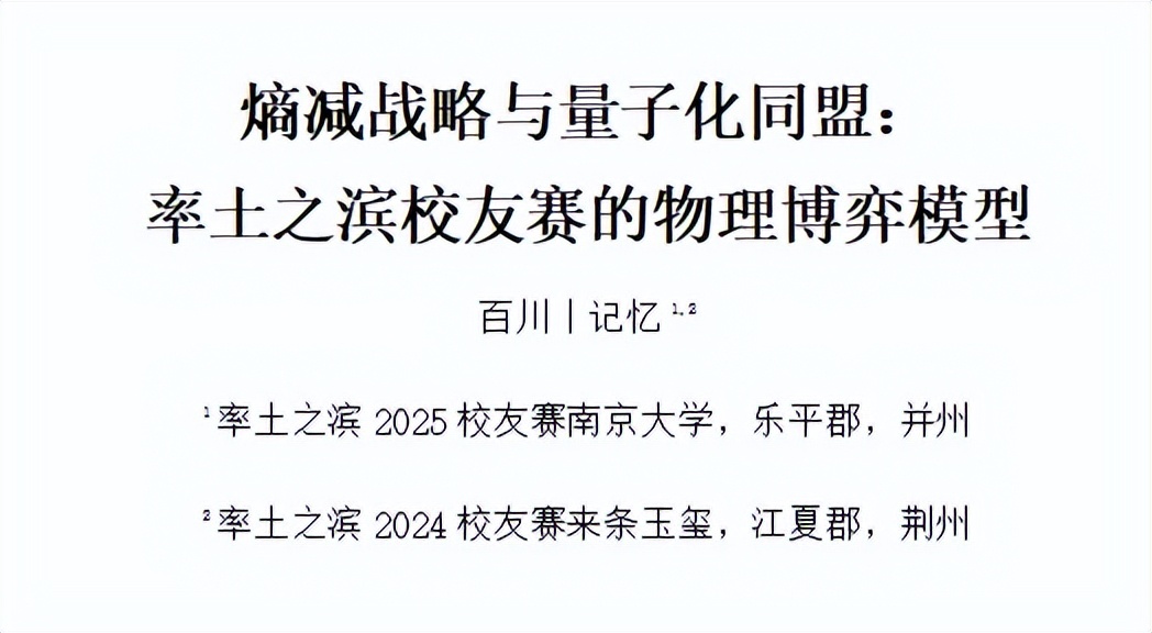 谁也没想到,在最近的校友赛上,这位大佬为了帮同盟提前规划布局,愣是写出了一篇名为《熵减策略与量子化同盟:率土之滨校友赛的物理博弈模型》的战术论文。
