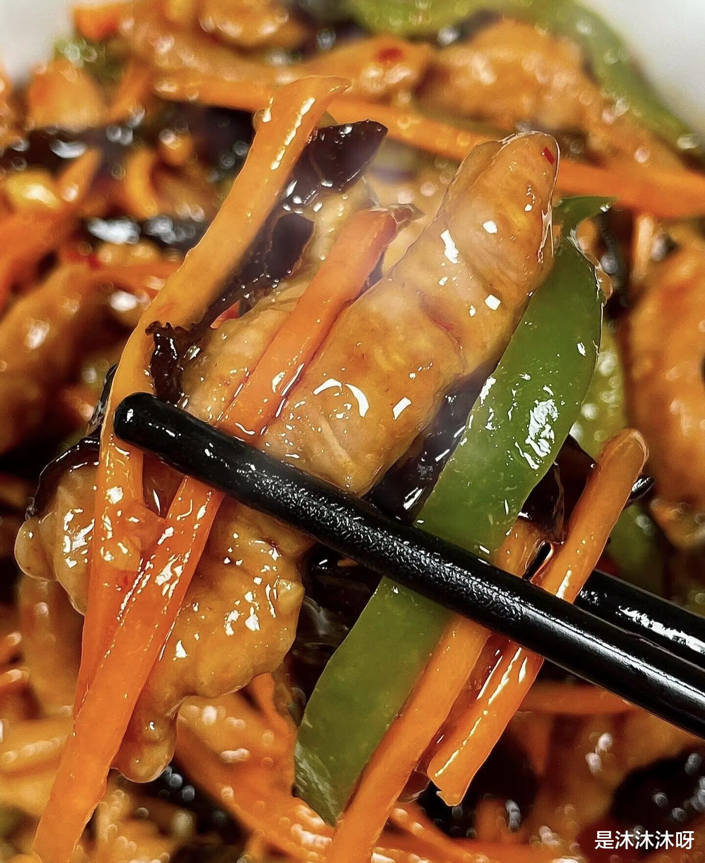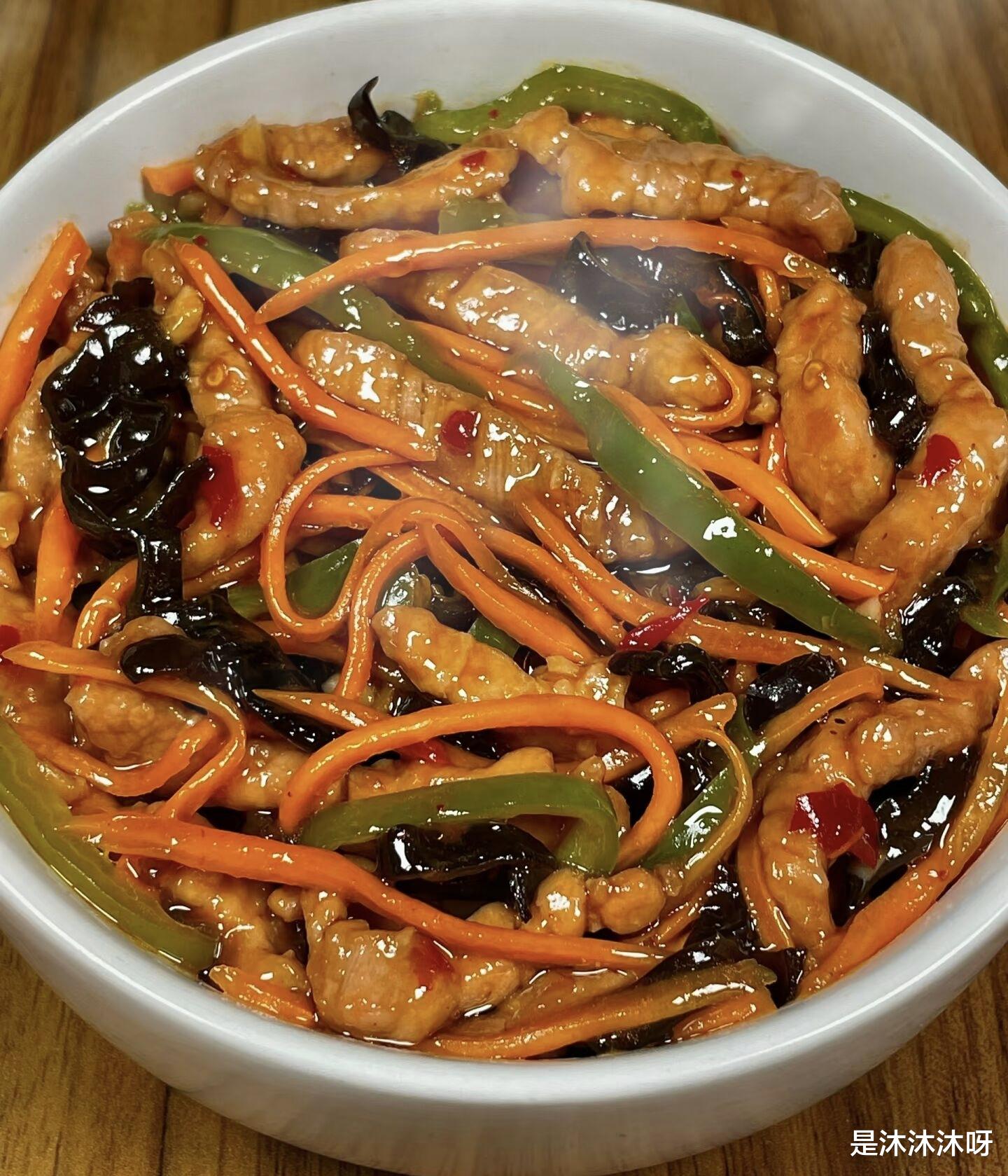 当这盘色香味俱全的鱼香肉丝端上桌时,你会看到肉丝嫩滑,配菜爽脆,红油亮泽,葱花点缀其间。夹一筷子送进嘴里,先是感受到鱼香汁那复合的酸甜辣味,然后是肉丝的嫩滑和木耳的脆爽,口感丰富,味道层层递进,好吃到根本停不下来!配上一碗热气腾腾的白米饭,再舀上一勺浓郁的汤汁浇在饭上,拌匀了吃,那滋味,简直了!这就是家的味道,简单、实在,却又充满了让人幸福的魔力。