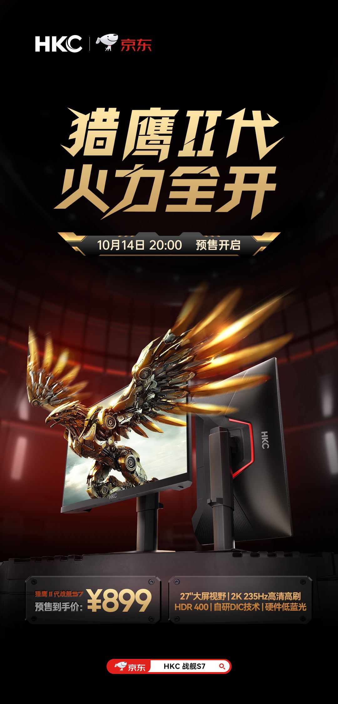 从配置来看,27 英寸、2K 分辨率、235Hz刷新率、HDR400认证、升降旋转支架等这样的组合,放在以往往往是“千元级往上”的价位段。而HKC战舰 S7显示器直接将售价定在899元,无疑为消费者带来了不小惊喜。对于预算有限但又希望体验2K高刷电竞显示器的用户来说,战舰S7无疑是当前市场中最值得入手的选择之一。产品现已开启预售,感兴趣的用户可到电商平台了解更多信息。