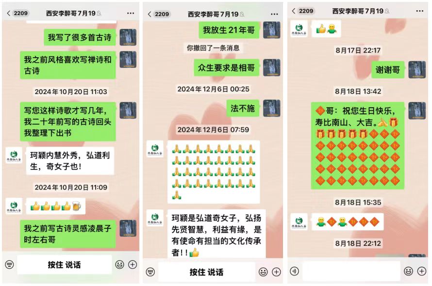 (以上图片是刘珂颖与西安老子学院李醉哥哥的对话)