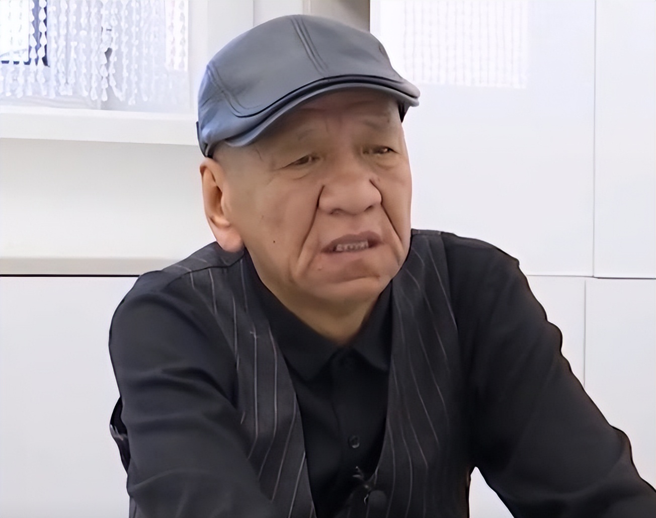 红娘上门拜访鲁大爷时,他身穿一件黑色衬衫,外搭深灰色条纹马甲,每一颗扣子都一丝不苟地系好,头戴一顶贝雷帽,装扮非常讲究也非常时髦。