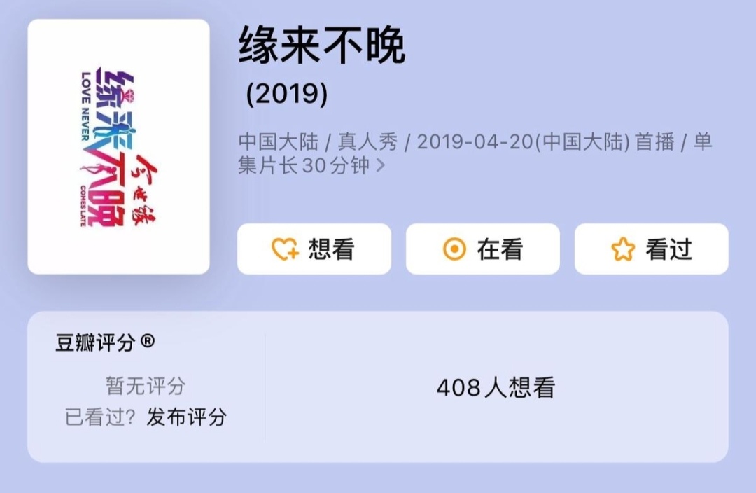 参考信息来源: 2019年吉林卫视:《缘来不晚 :进屋你就当家》
