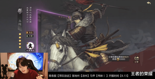 最近,知名游戏主播伟妹在直播《率土之滨》青春服时,第一次五连抽就抽到了刘备,可这不是她想要的。于是,第二次五连抽时,她立了个 flag,大喊 “愿意十年单身换一张马超”。结果,第一抽就真的出了马超,直播间瞬间沸腾。