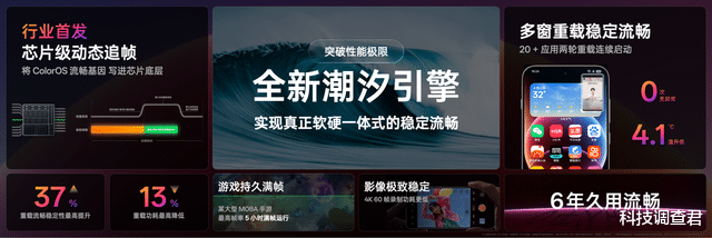 对比传统方案,搭载了芯片级动态追帧技术的ColorOS 16能够做到更精细的功耗管理,任务完成后还能及时回收多余算力,减少功耗浪费。在实测中,系统在重载场景下的流畅稳定性提升了37%,功耗对应降低了13%。在芯片级动态追帧技术的赋能下,ColorOS 16的流畅性得以最大程度释放和展现,真正实现了从硬件到软件的全面流畅体验。除了重载,全新潮汐引擎还升级了久用技术,系统久用6年也能持久流畅,实现重载和久用双极限场景的双重流畅。