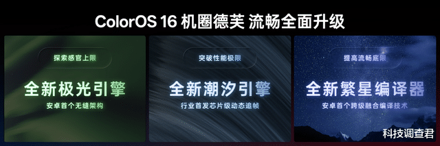 OPPO ColorOS设计总监陈希表示:“ColorOS 16致力于打破流畅体验断层的行业困局,带来三大流畅技术升级:全新极光引擎,带来安卓首个无缝架构,探索感官上限;全新潮汐引擎,带来行业首发的芯片级动态追帧技术,突破性能极限;全新繁星编译器,带来安卓首个跨级融合编译技术,深入系统底层,突破算法效率,提高流畅底限。三大核心技术,让机圈德芙全面流畅。”