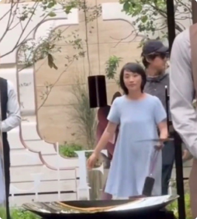 最让人注意的,是她微微隆起的小腹,虽然裙装宽松,但还是能看出轻微的弧度。