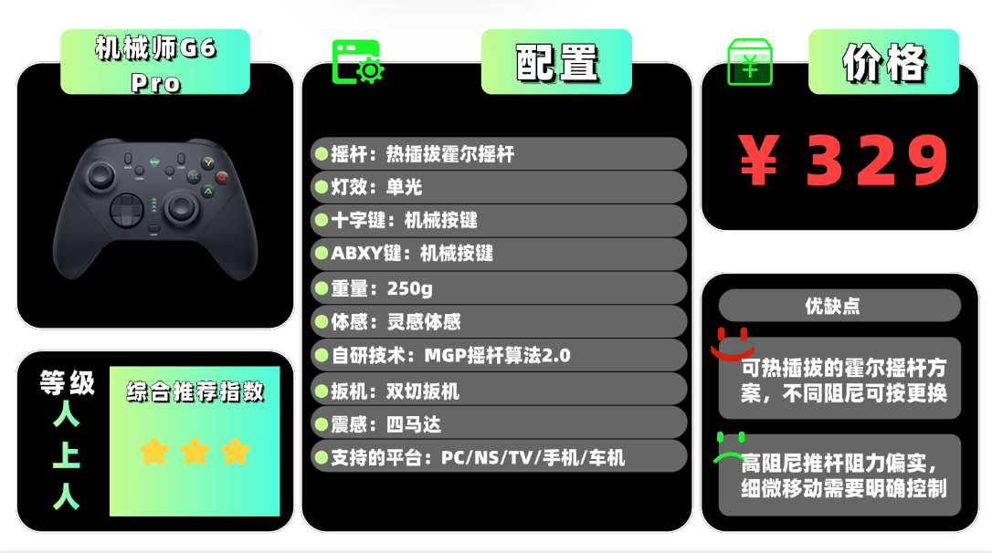 上榜产品7、机 械师G 6 Pro游戏手柄