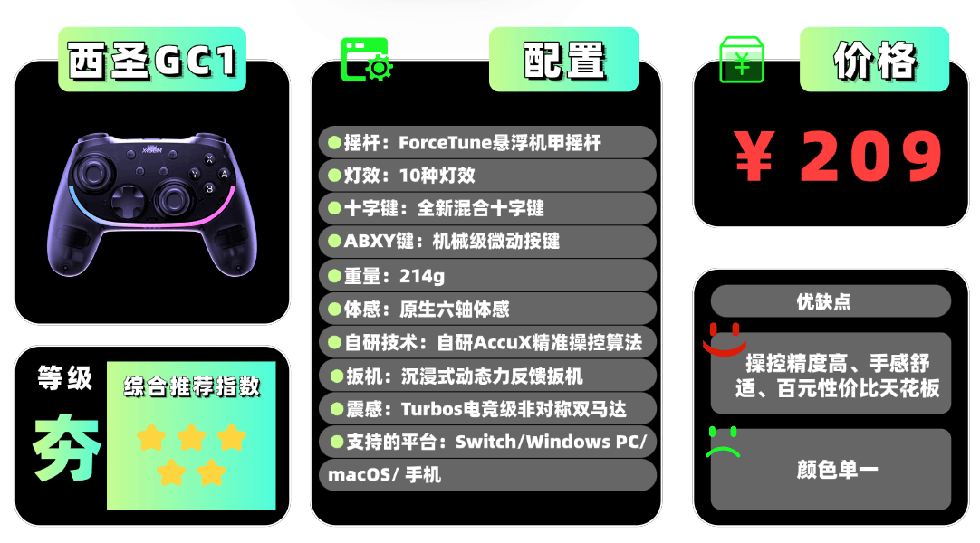 上榜产品1、极致性价比的西圣GC1游戏手柄