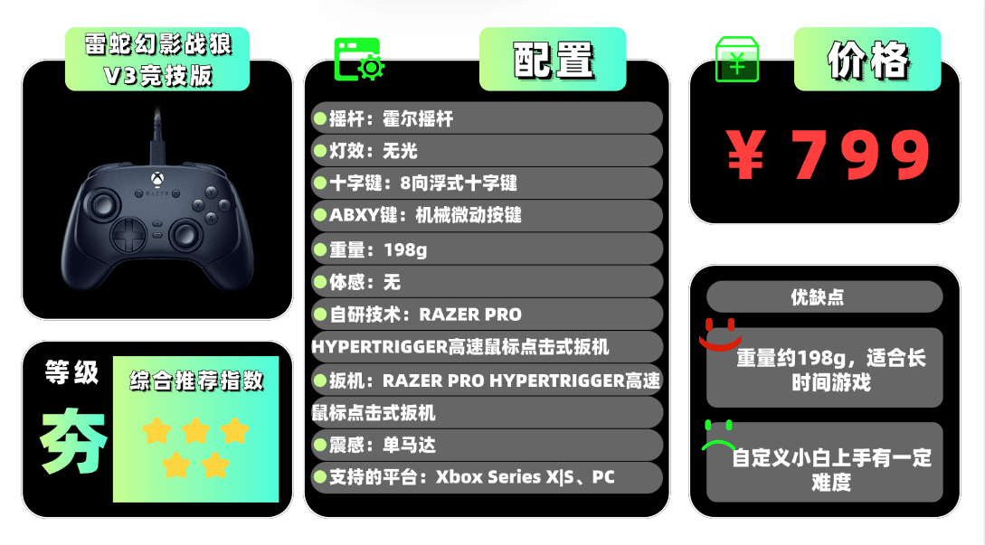 上榜产品4、雷 蛇幻 影战狼V3竞技版游戏手柄