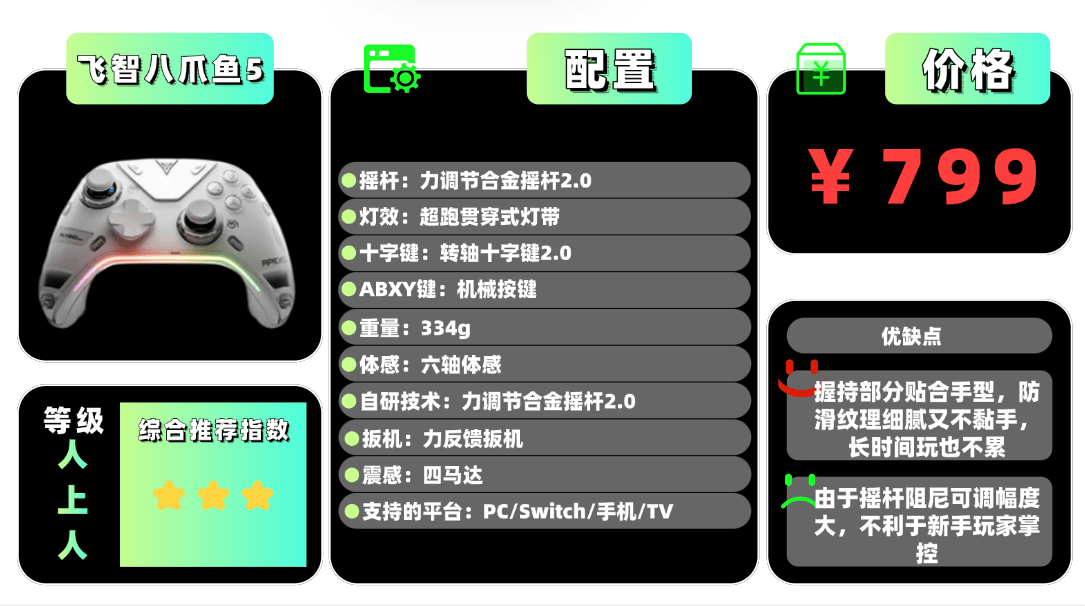 上榜产品5、飞 智八 爪鱼5游戏手柄