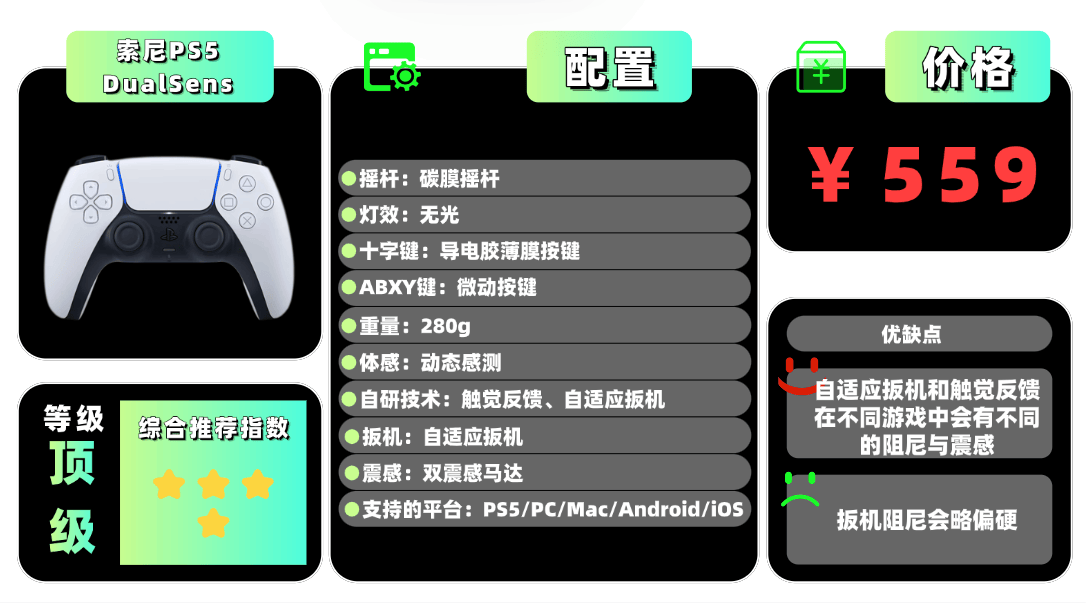 上榜产品2、索 尼P S5 DualSense游戏手柄