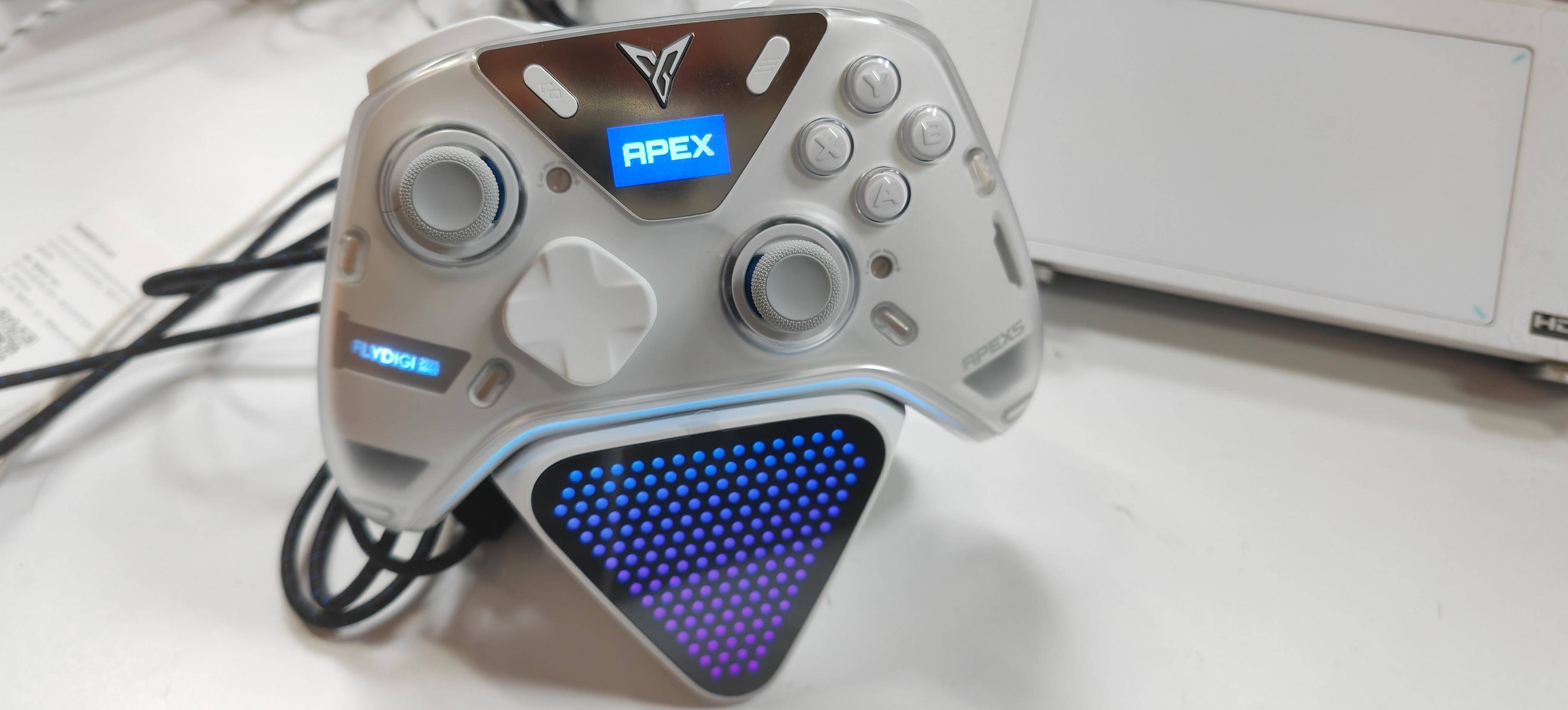 连接与功能层面同样是精英级配置,支持蓝牙5.2与2.4G双模无线,可记忆多设备,在PC、NS和移动端切换顺畅,复杂无线环境下稳定性也不错。六轴体感支持原生与映射使用,配合体感+摇杆混合控制,在FPS和动作类游戏中有明显精度优势。内置1000mAh电池,续航可覆盖高强度多日使用,并支持边充边玩;配套软件可调摇杆死区、扳机行程、宏指令与多套配置文件,满足深度玩家需求。