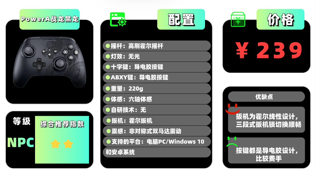 上榜产品3、P owerA战 龙黑龙游戏手柄