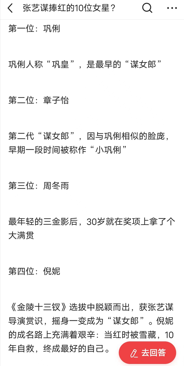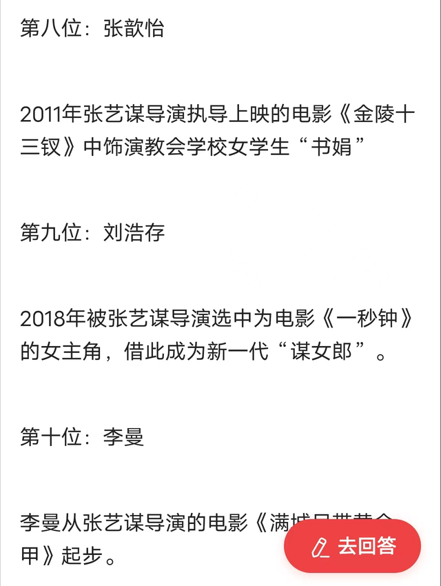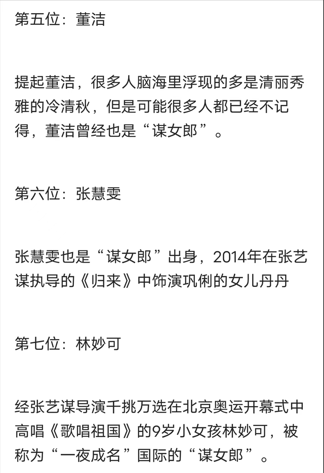其中张艺谋捧红的女演员有:巩俐,章子怡,周冬雨,倪妮,董杰,张慧雯,林妙可,张韵怡,刘浩存,李曼。
