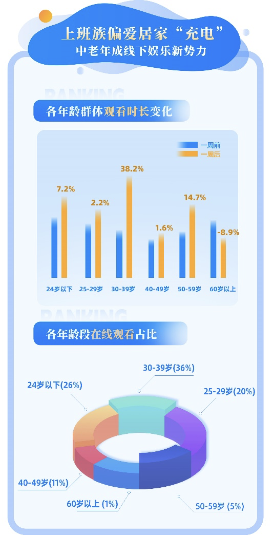 值得注意的是,30-39岁群体渐成“宅娱乐”主力。数据显示,这一群体的假期观看时长环比增长最为显著。较节前一周增长38.2%,而中老年群体则表现出更强的线下文化消费意愿。优酷工作人员认为这一现象反映出不同年龄段人群差异化的休假需求。“30到39岁的职场人士或因日常工作强度较高,更倾向于利用假期‘充电’,通过线上娱乐实现高效率的休闲放松。与此同时,拥有更多自主时间的中老年群体,则更愿意通过线下活动来丰富生活体验。”