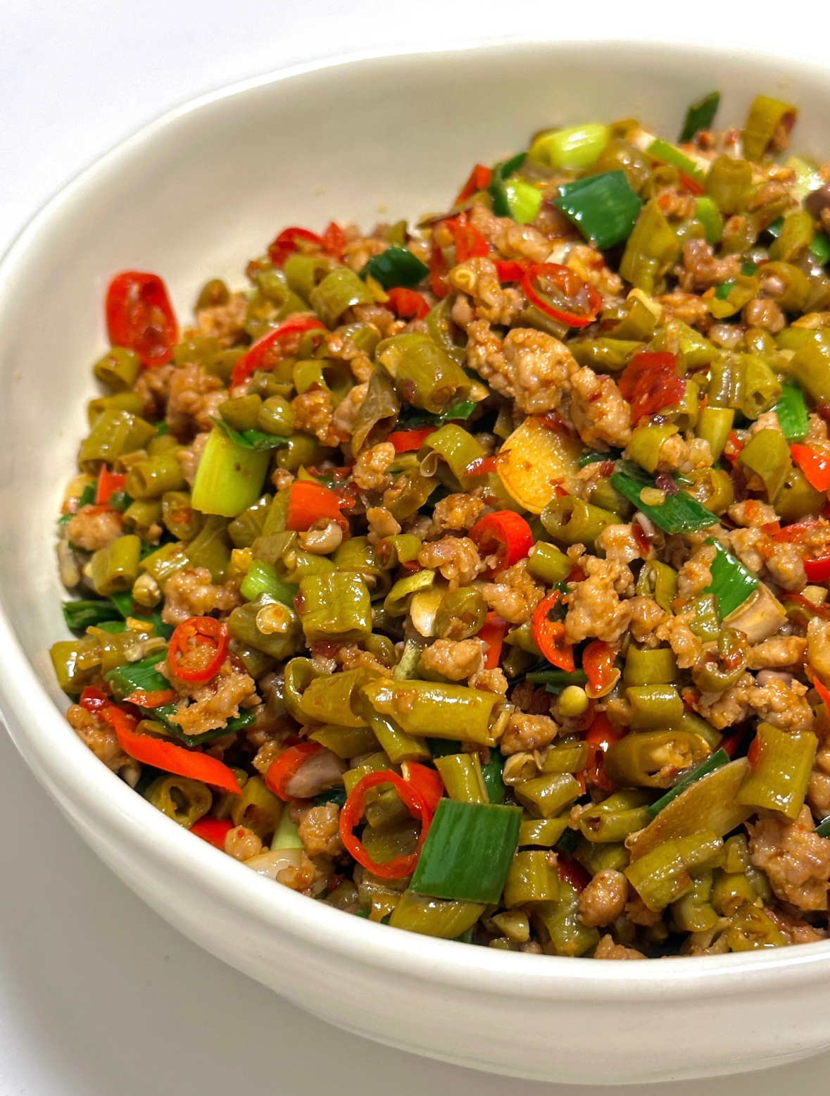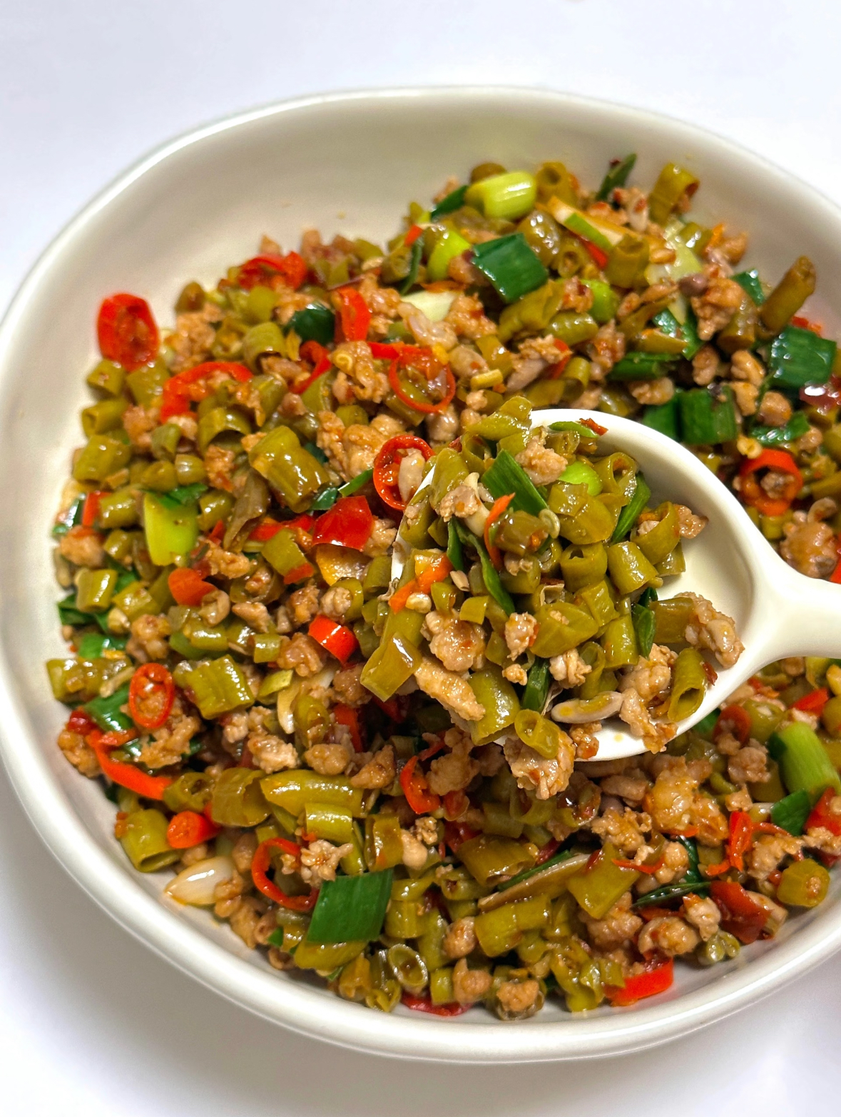 酸豆角炒肉末是一道非常开胃下饭的湘菜家常菜,酸爽的豆角搭配香嫩的肉末,能让你轻松多吃两碗饭。