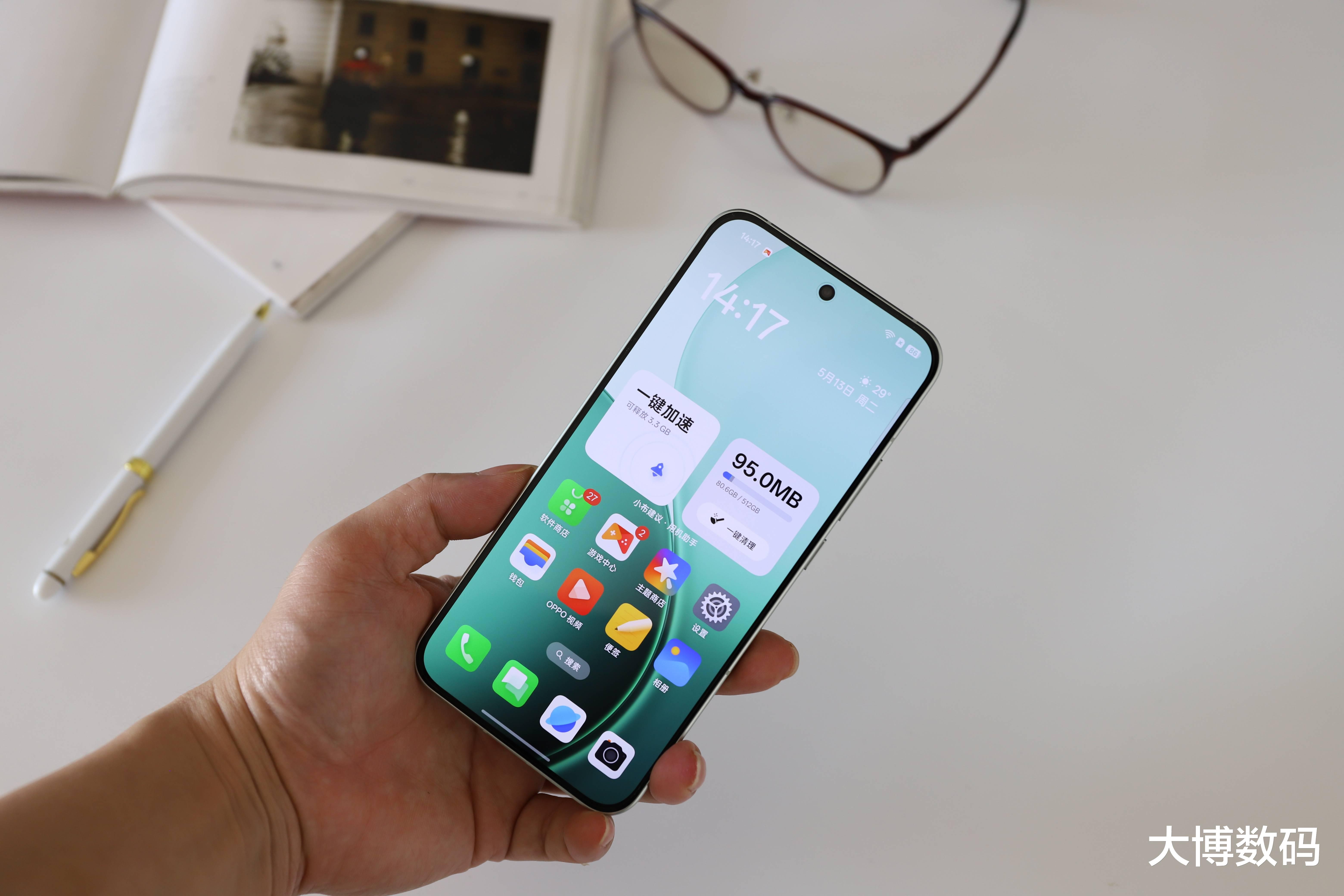 尺寸优化:相比前代6.59英寸直屏,Reno 15标准版显著缩小至6.32英寸小直屏,宽度控制在71mm左右,完美实现单手操作体验