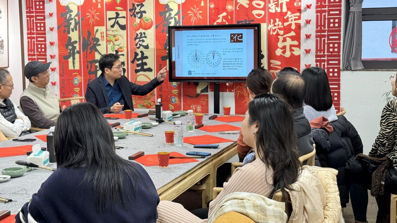 下午14时,艺术分享会在国贸艺术交流站宁静雅致的氛围中正式开始。主讲人左古山先生于2025年荣获“世博艺术大师”称号及“世博金质奖章”荣誉,其深厚的学养与艺术造诣为活动奠定了高雅的基调。他带领来宾步入传统书画的艺术世界,共同感受笔墨间的意蕴与新春的祥瑞。