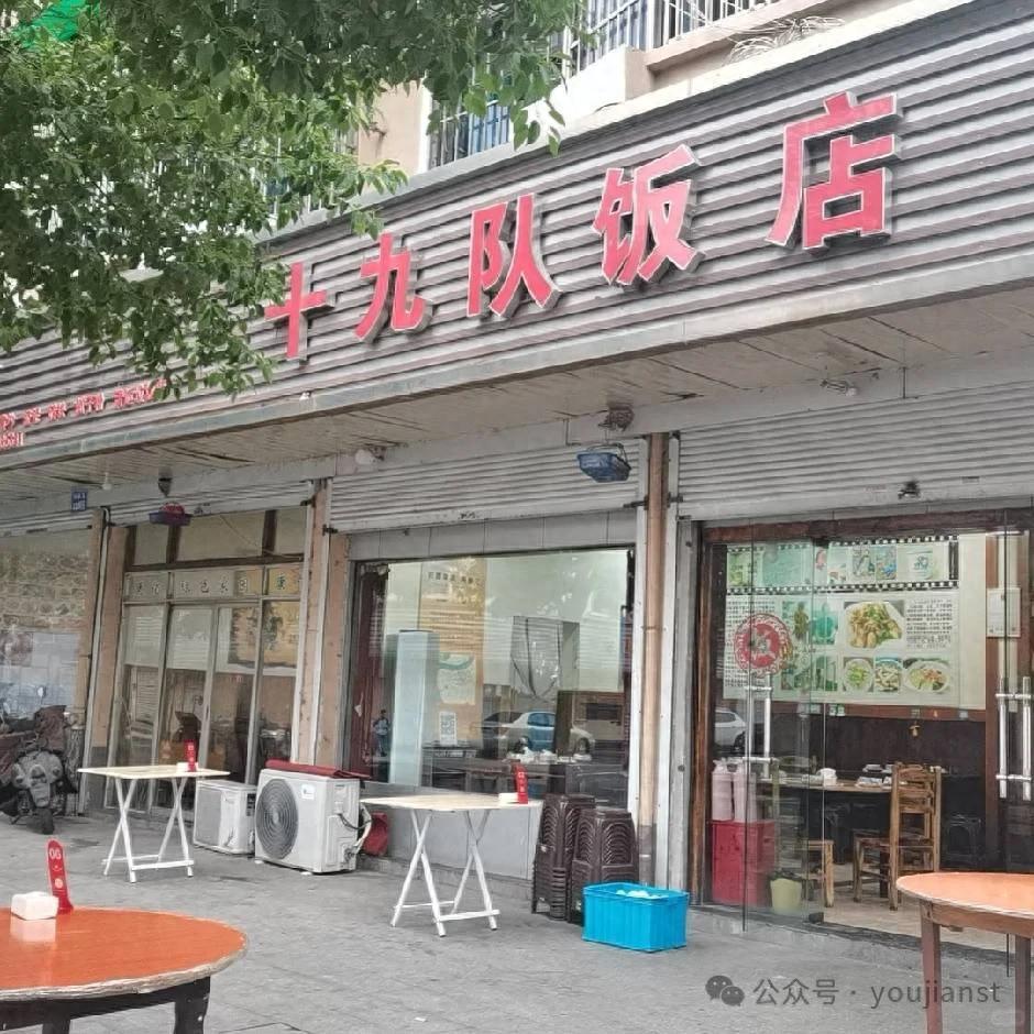 十九队饭店的店貌与陈设很是普通,典型的苍蝇馆子作派,门头宽大而朴素,红底或白底的招牌上,除了“十九队饭店”几个大字没有其它多余修饰,店内空间极为开阔,大厅里密密麻麻地摆满了简易的圆桌和折叠椅,桌与桌之间间隙狭小,人声鼎沸时显得格外热闹,也略显拥挤。