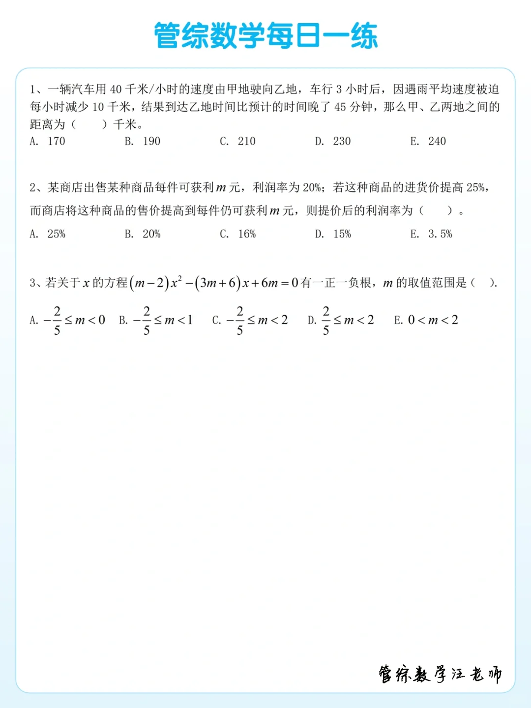 管综数学每日一练(5月9日)