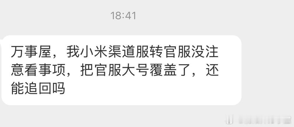 “屋屋,昨天小米渠道不是搞转移吗?我晚上要处理的时候发现我的账号已经被转移到一个