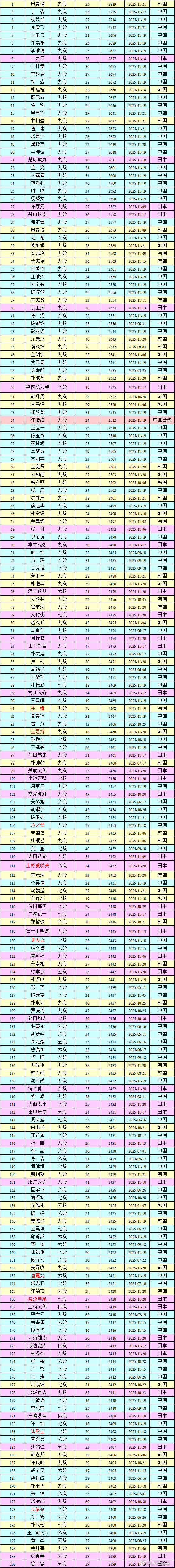 段位赛之后,等级分榜30年来首现2000分以下