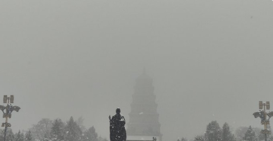 西安普降瑞雪,漫天飞舞的雪花将古城装扮得如诗如画。银装素裹的世界让古城更显古朴庄